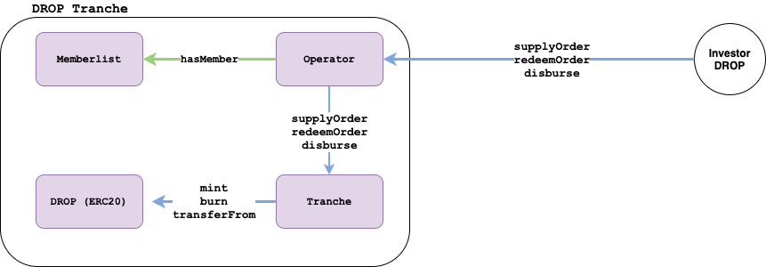- Alice wants to invest 100 DAI into the seniorTranche (DROP).